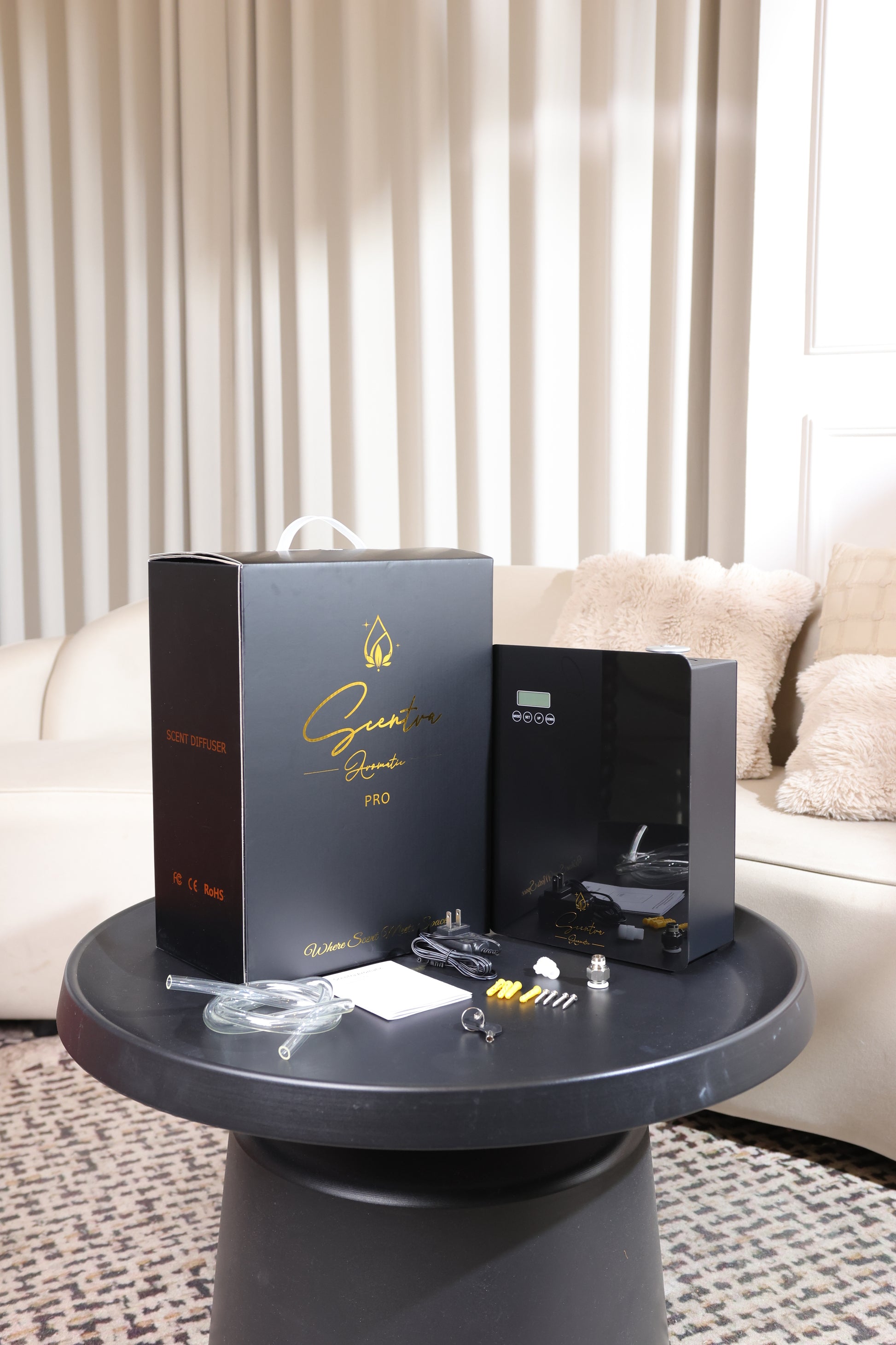 - Connects directly to your HVAC system for smooth, even scent distribution across multiple rooms, floors, or open layouts without needing multiple diffusers.